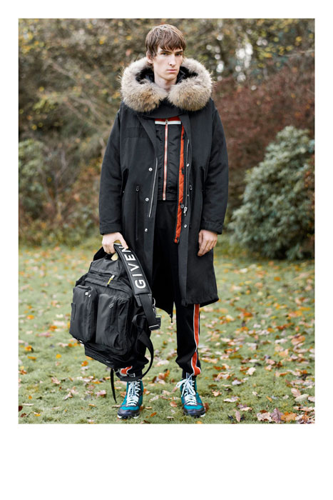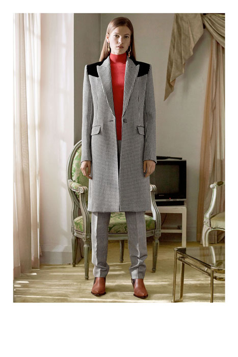 В новом префолле есть пиджаки, бушлаты и пальто, объемные, как с мужского плеча, брюки и туфли на устойчивом каблуке в духе 70-х. Все это чередуется с длинными монохромными шубами из искусственного меха, платьями и миди-юбками в крупную плиссировку, блузами с бантом и оборками — все выполнено в колор-блоке насыщенных, согревающих цветов. Кроме того, Уэйт Келлер украсила вещи динамичными зигзагами, мелкими цветами (их The New York Times назвал «it-цветами») и лого бренда, составленным из четырех букв G, которое мы привыкли видеть в бьюти-линейке Givenchy. В этот лукбук включили и вещи из мужской коллекции — например, жаккардовый леопардовый костюм в красном и сером оттенках, камуфляжный свитшот с ярко-оранжевой вышивкой логотипа и большие спортивные сумки с тканевым ремнем.