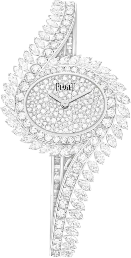 Часы из коллекции Высокого ювелирного искусства верны кодам Limelight Gala со свойственными ей асимметричными формами. Модель из белого золота украшена бриллиантами круглой огранки и бриллиантами огранки «маркиза» — одной из визитных карточек дома. Название этой огранки появилось благодаря королю Людовику XV. Он вдохновился формой губ маркизы де Помпадур и придумал новый стиль обработки драгоценных камней в ее честь. Циферблат этих час