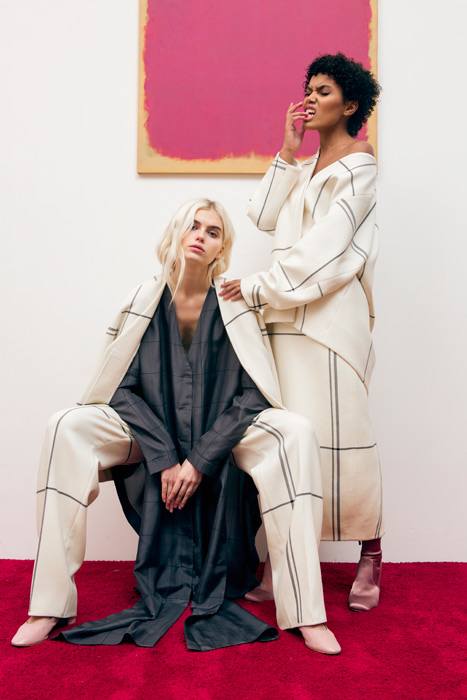 С первого взгляда на одежду становится ясно, что дизайнерам удалось достичь желаемого. Во-первых, для каждой вещи были подобраны итальянские шелк и шерсть. Во-вторых, струящиеся рубашки, брюки-палаццо, пиджаки с объемными рукавами, удлиненные пальто, брючные костюмы и платья получились простыми и понятными, в духе уже знакомых и любимых трендов, но при этом необычными и утонченными, говорящими о внутренней силе и красоте своей хозяйки. Все это дизайнеры заключили в лаконичный лукбук, описывающий коллекцию и ее концепцию максимально полно.