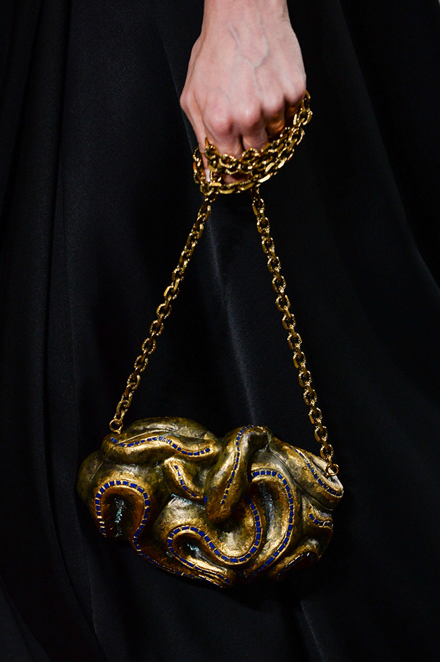 Valentino всегда так или иначе затрагивает в своих коллекциях тему католичества, что вполне естественно для модного дома, который базируется недалеко от Ватикана. Однако если раньше религиозная тема проходила тонкой линией, то в этом сезоне ее присутствие было более очевидным. По словам Пьерпаоло Пиччоли, в новой кутюрной коллекции он хотел провести параллель между святым и ритуальным и сплести их воедино с кутюрными техниками. За визуальностью дизайнер обратился к картинам испанского художника Франсиско де Сурбарана, который в своей живописи уделял особое внимание библейским сюжетам и образам. В коллекции появились монументальные монашеские платья с капюшонами, тяжелые накидки и сумки в виде голов зверей как символов семи смертных грехов. Если в последнюю резортную коллекцию Пиччоли внедрил элементы повседневной одежды в виде спортивных костюмов, то в кутюрной в череду шелковых и тюлевых платьев вписались брюки, водолазки и жилеты. Возможно, такое сочетание противоположностей можно воспринимать как еще один знак в пользу того, что даже крупные дома моды начинают создавать вещи, прислушиваясь к нуждам своих клиентов.