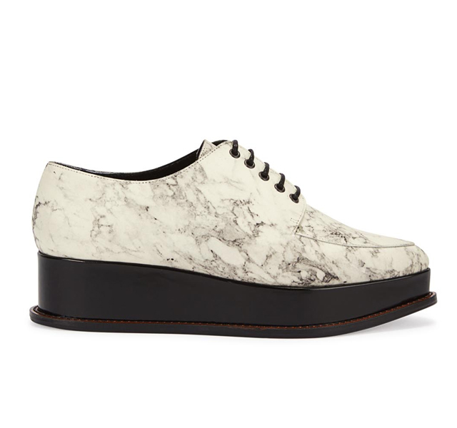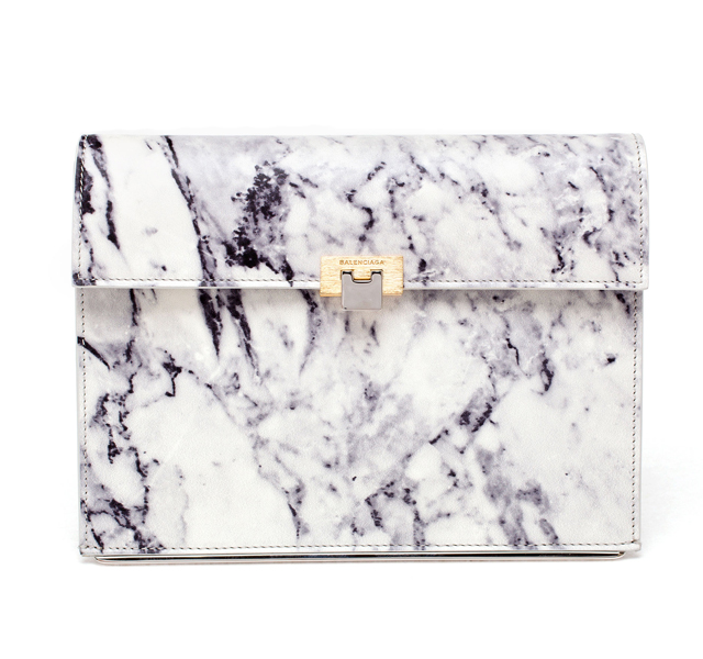 Принт с узнаваемым рисунком этого камня — тонкие черные прожилки на белом фоне — в этом сезоне встречается повсеместно. Главным образом на аксессуарах: клатчах, ботинках, туфлях-лодочках и даже украшениях, например, кольцах, серьгах-шандельерах и массивных браслетах.