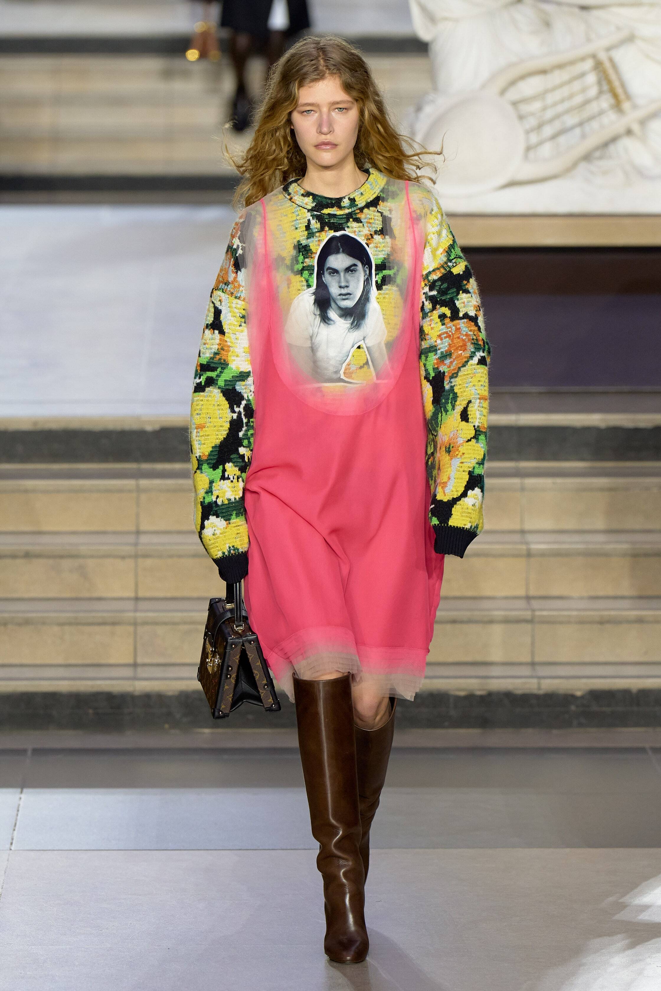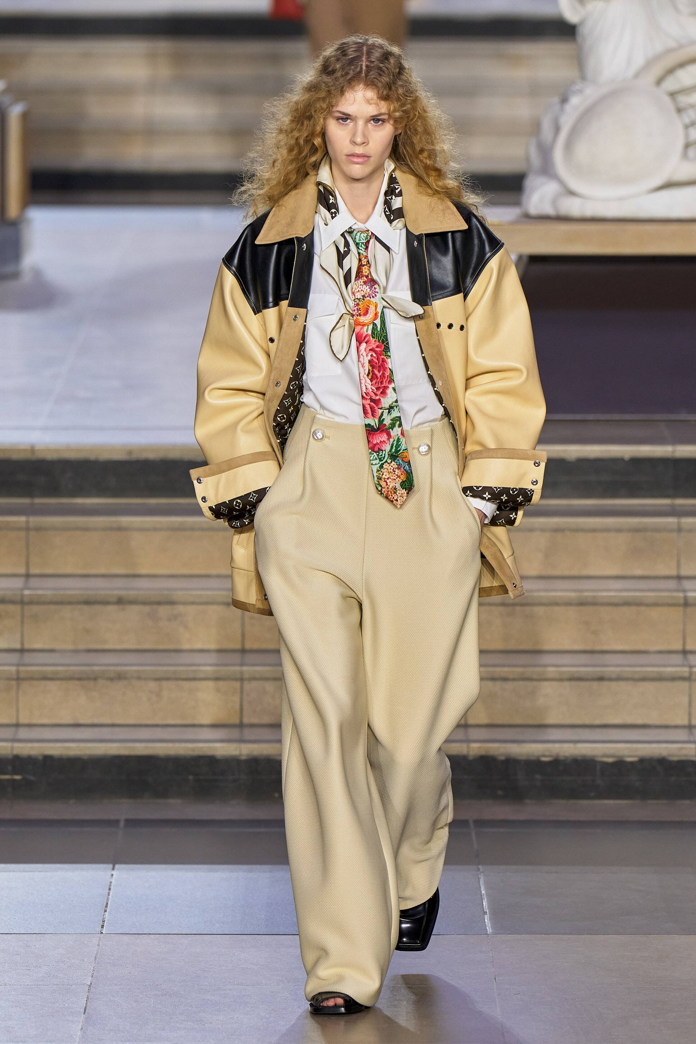 Сам Николя Жескьер описывает свою новую работу так: «Эта коллекция посвящается юности — в ее ярком романтизме, вдохновляющем идеализме, надежде на будущее и на лучший мир». При этом силуэты напоминают о 80-х годах — как раз на это время приходилась юность дизайнера. Есть куртки и пальто с широкими плечами, свободные комбинезоны, рубашки с галстуки и жакеты по моде того времени. В продолжении темы юности Louis Vuitton напечатал на платьях и толстовках портреты подростков, сделанные фотографом Дэвидом Симсом в 1990-е годы.