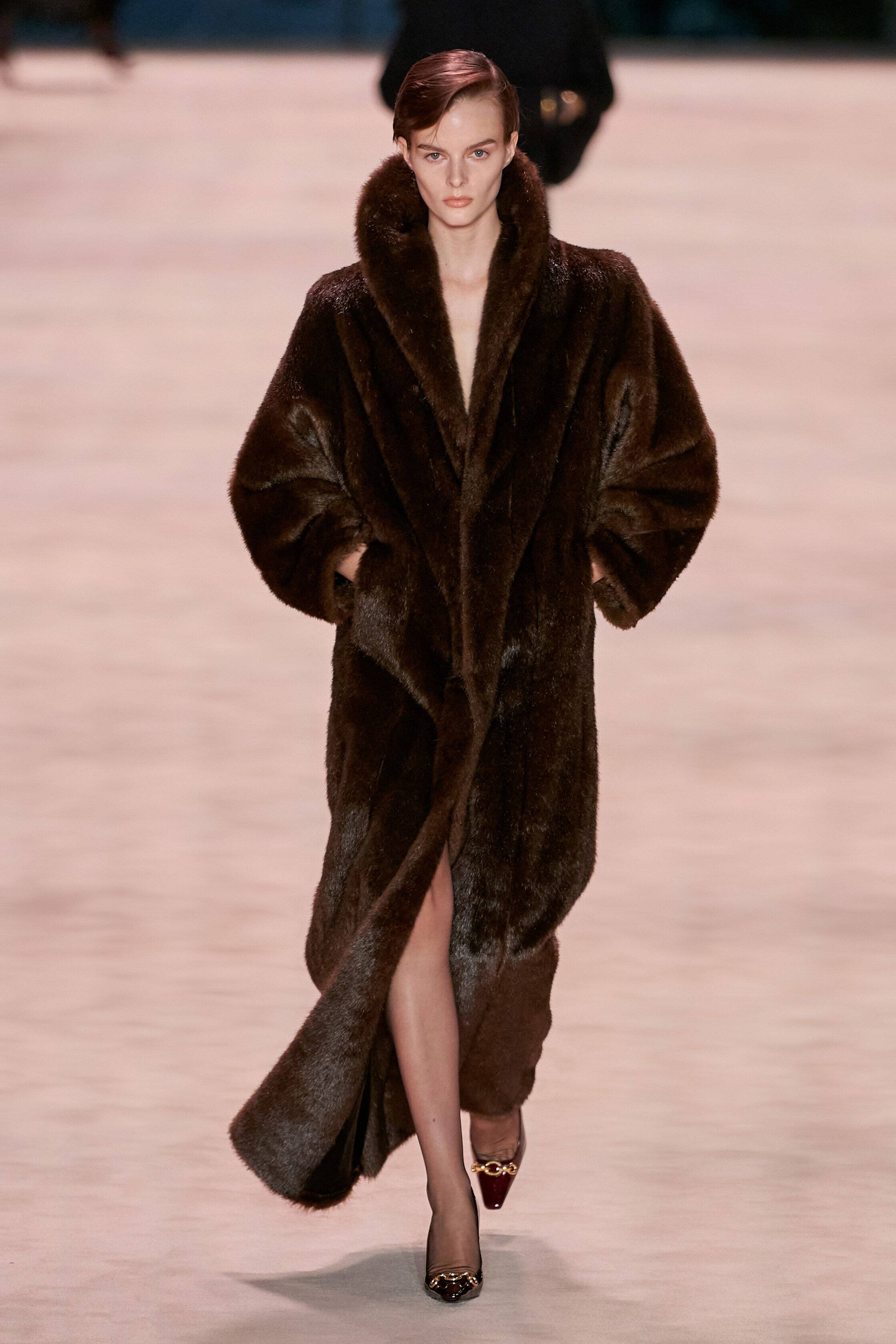 Помните коллекции Энтони Ваккарелло с бесконечными мини и бра-топами? Новая работа дизайнера далека от прежних кодов. Это очень французская и очень сен-лорановская элегантность без прямых цитат: были роскошные бушлаты, длинные пальто, кожаные плащи и объемные шубы из искусственного меха, удивительно похожего на настоящий. А под верхней одеждой — только вечерние платья из атласа, шифона и кружева.