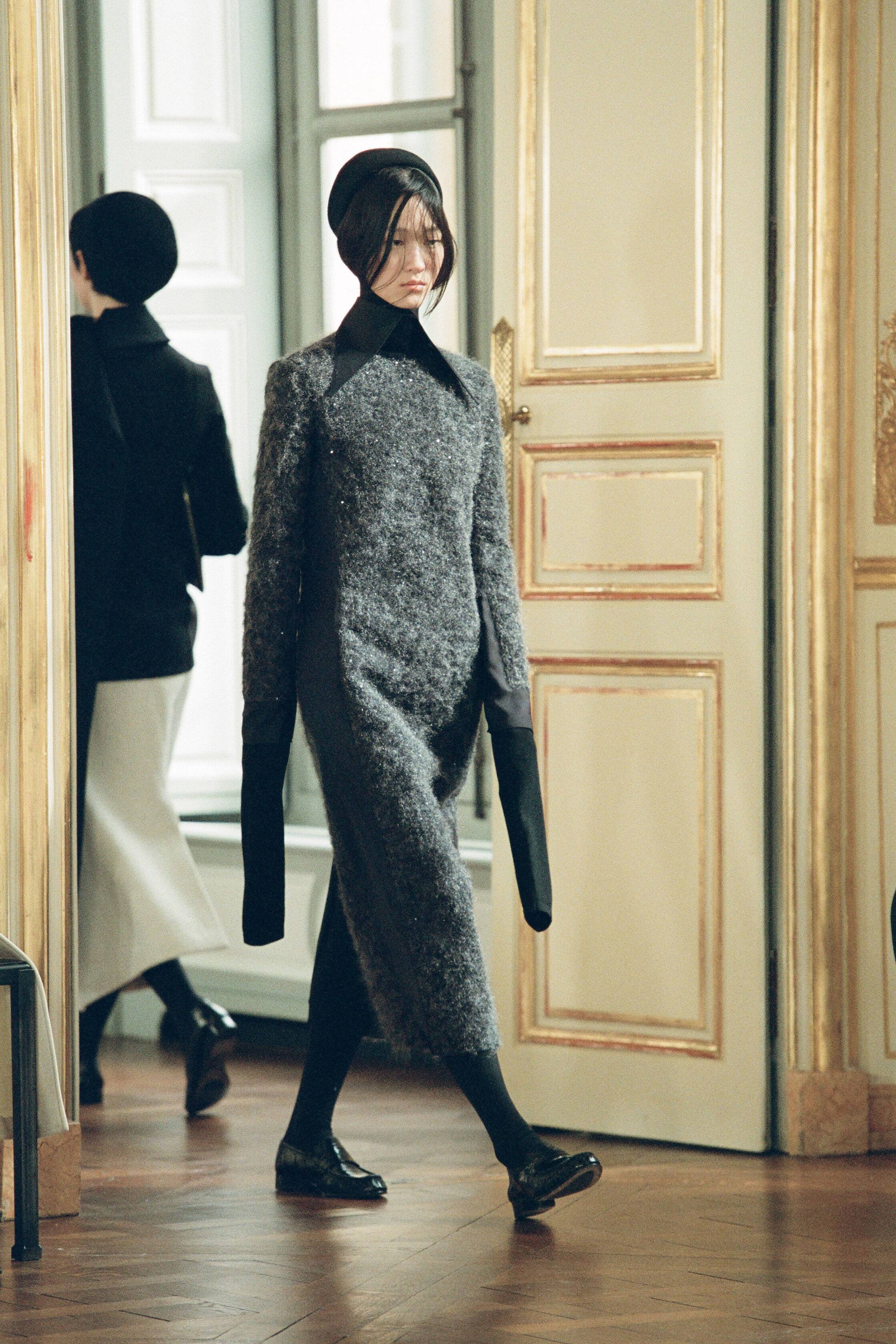 Бренд сестер Олсен в этом сезоне показывался в рамках парижской недели моды, а не в Нью-Йорке, как обычно. Дизайн-студия The Row тоже без громких заявлений переехала во Францию. В новой коллекции Мэри-Кейт и Эшли обратились к архивам своих любимых дизайнеров — Мартина Марджелы и Йодзи Ямамото. Об их работах напоминают рубашки и свитеры с утрированно длинными рукавами, надетые задом-наперед пальто, прямые асимметричные юбки и платья-пледы. У большинства вещей акцент сделан на воротниках: на рубашках они увеличены и заострены, на пальто — превращаются в шарф, лацканы жакетов имитируют завязанный платок.
