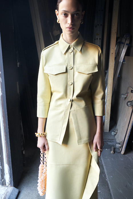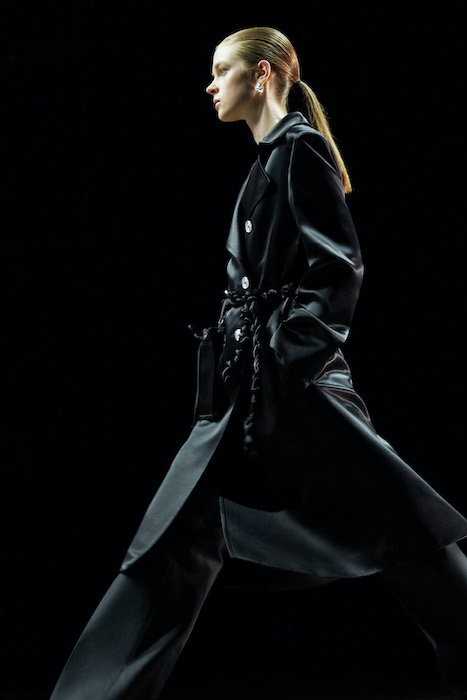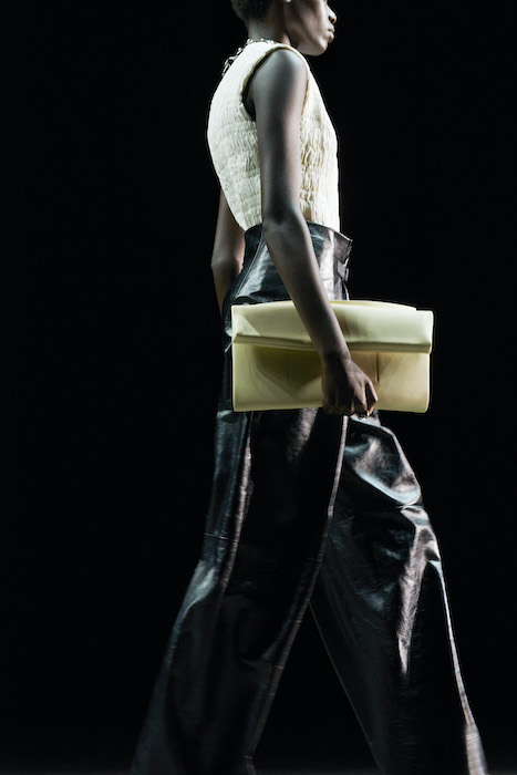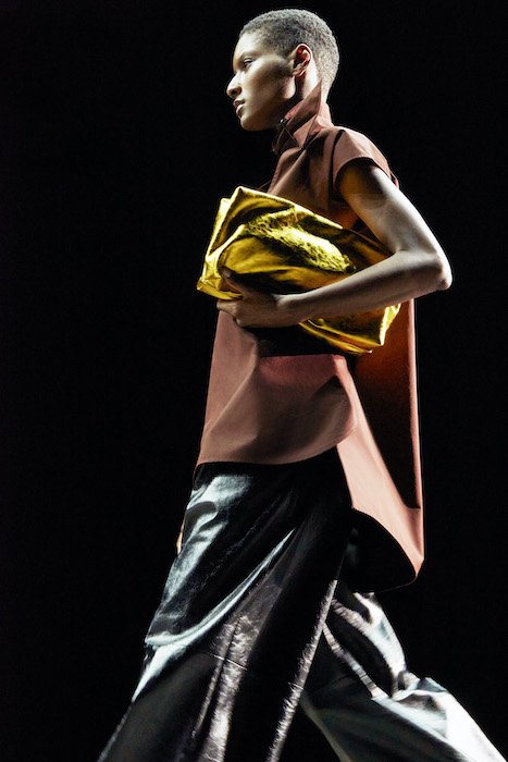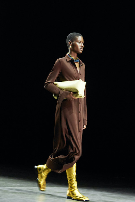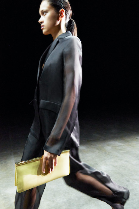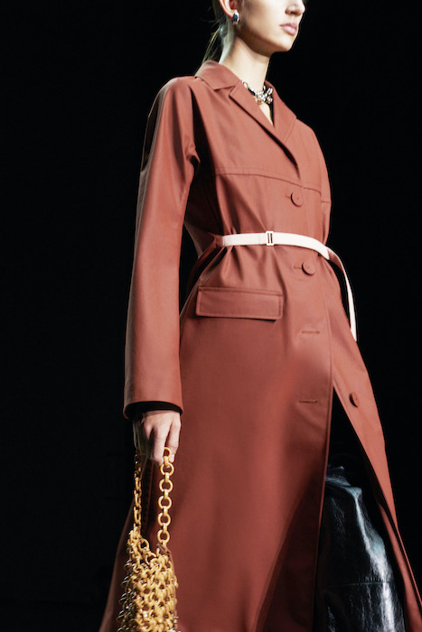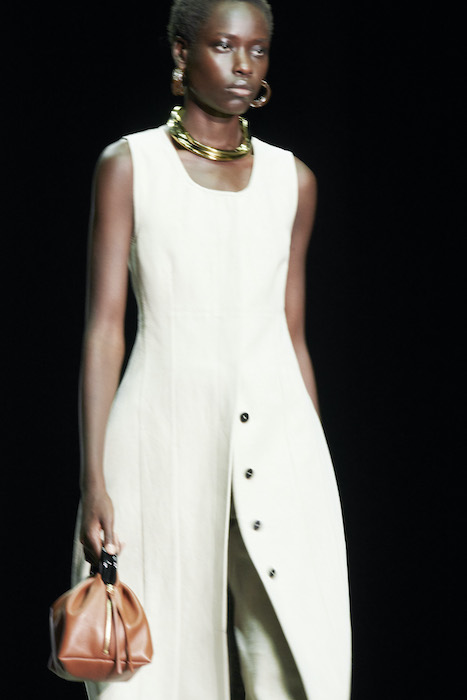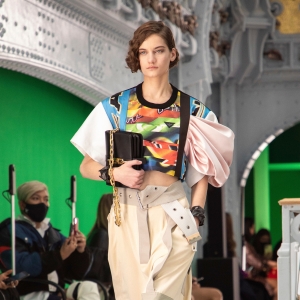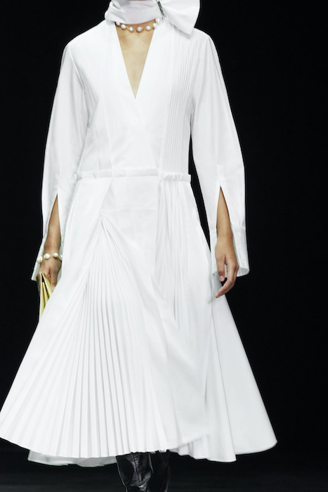 Jil Sander не провел показ на Неделе моды в Милане, как обычно, — новую коллекцию креативные директора Люси и Люки Мейер представили в формате видео на IGTV. В нее вошли плиссированные платья чистых силуэтов, приталенные плащи и множество костюмов: от моделей из строго серого твида до совсем невесомых вариантов из шелка. Акценты в коллекции расставлены с помощью вышивки, больших пуговиц, воротников и украшений из черной кожи на шею. Плащи подпоясываются сплетенным вручную ремнем, на который крепится сумка. Обувная линия включает босоножки с липучками на крошечном каблуке, сапоги с квадратным носом и вариации рыбацких сандалий.