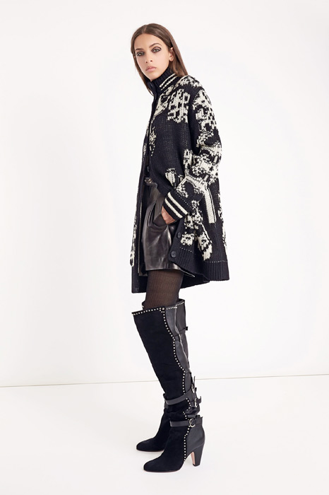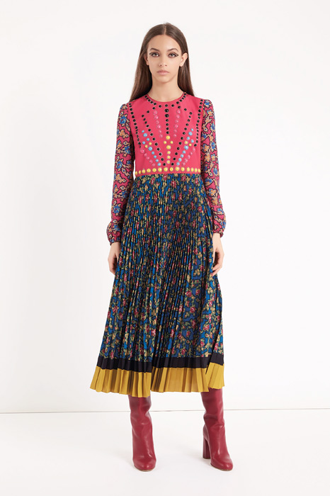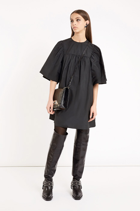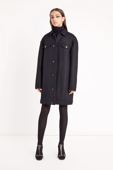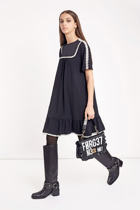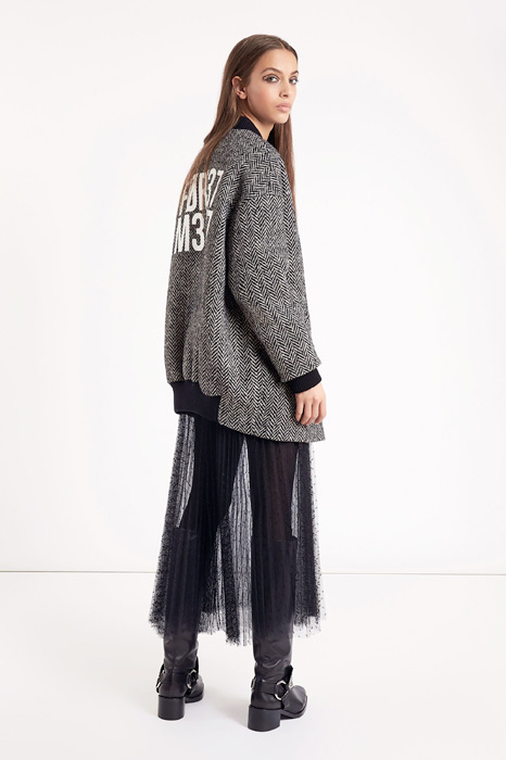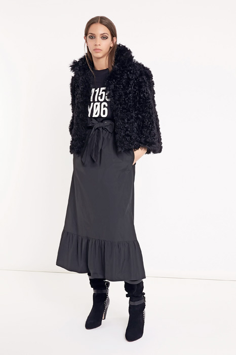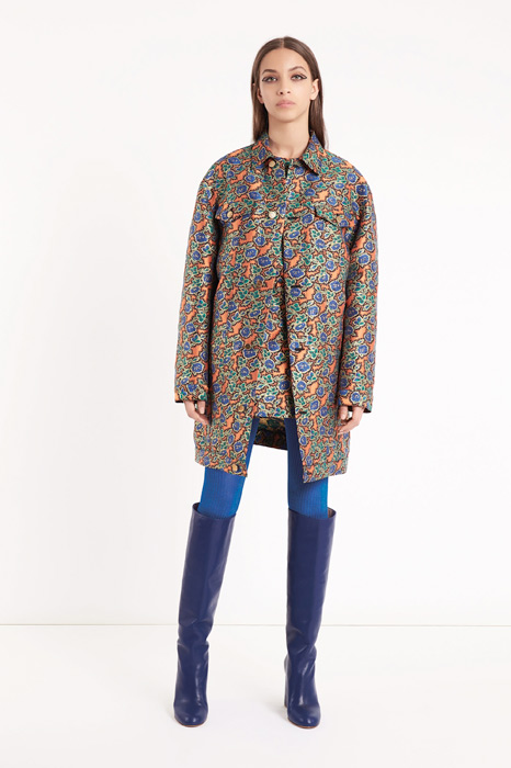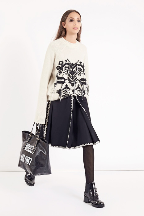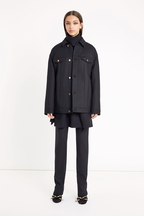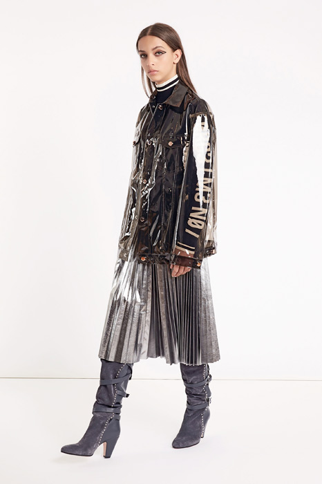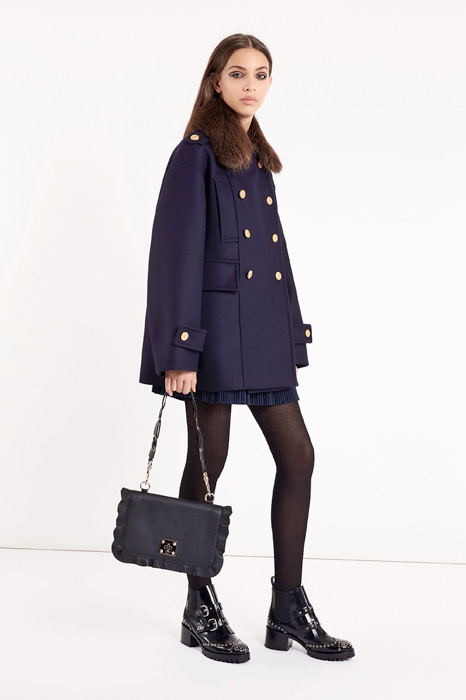 Главной темой коллекции стал стиль милитари, который при этом не был чересчур жестким и маскулинным. Скорее, наоборот, военная тема была переработана под молодую клиентку Red Valentino, которая ищет по-юношески женственную одежду. В коллекцию вошли пальто, напоминающие бушлаты, розовый бомбер, а фразы на одежде были выполнены на манер шифра времен холодной войны.