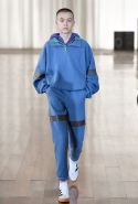 Основные элементы: спортивные костюмы, полосатые футбольные майки и поло, пуховики и стеганые парки, широкие джинсы, худи и толстовки, свитера с круглыми вырезами и с высоким горлом; на каждом предмете одежды название коллекции «ФУТБОЛ» написано кириллицей