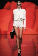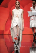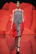 Обычно маки расцветают поздней весной и летом, но в этот раз пробудились ото сна на полгода раньше — 31 октября, на показе российского дизайнера Александра Арутюнова в "Гостином дворе". Яркий цветок стал одним из главных героев коллекции: пышные алые бутоны распустились и на лифах нарядных платьев, и на груди у "плечистых" бомберов из неопрена, и на массивных и сразу бросающихся в глаза ожерельях, и на парадных жакетах. Особенно красивым оказалось асимметричное платье на одно плечо, одна сторона которого стилизована под изящный пиджак — по его лацкану тянется вверх, к солнцу, тоненький зеленый стебелек, увенчанный красным бутоном.