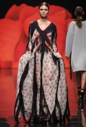 Даже выход на подиум дизайнер украсил огромными огненными маками, а посреди пылающего макового поля установил роскошный красный рояль. Роль "второй скрипки" в весенне-летней коллекции Alexander Arutyunov досталась бантам: девичьи принты из крохотных праздничных бантиков стали на подиуме вторыми по популярности.