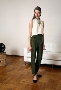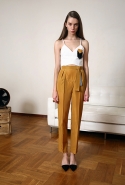 Александр Кондаков, молодой российский дизайнер, работая над весенне-летней коллекцией, тоже попал под влияние весенних ветров перемен. И решил сделать что-то совершенно новое — свежее, чувственное, чуть менее геометричное и более игривое. Акцент дизайнер по-прежнему делает на комбинезоны и брюки, и даже они выглядят очень изящными: девушки в зеленых и цвета охры брюках на талии с отглаженными стрелками и нежными светлыми топами похожи на тоненьких балерин, которые вот-вот вскинут руки над головой и закружатся на носочке. Хотя в аккуратных туфельках с крохотными kitten heels, которые выпустили специально для коллекции мастера марки Rosbalet, повторить па и фуэте настоящих танцовщиц получится вряд ли.
