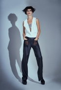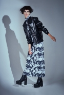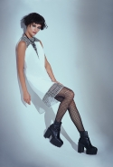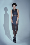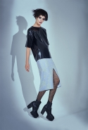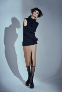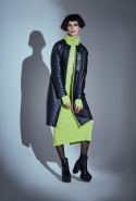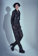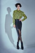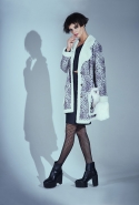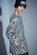 Провокационная сексуальность сочетается с гиковской любовью к фантастике и комиксам, главными героями которых в принтах на платьях и топах оказываются нарисованные кошечки, а геометричные формы перекликаются со смелыми вырезами, массивными молниями и прозрачными деталями. Основой гардероба этой девушки-кошки становятся вещи черного, серого и белого цветов, разбавленные кислотным желто-зеленым и леопардовыми принтами. А свободные, не сковывающие движений платья, комбинезоны, удобные дубленки и парки соседствуют в ее шкафу с кожаными юбками с вырезами до бедра и черными сетчатыми колготками. В коллаборации с итальянским брендом Braschi специально для осенне-зимней коллекции ARnouveau также была создана небольшая линейка аксессуаров: варежки и рюкзак из натурального меха.
