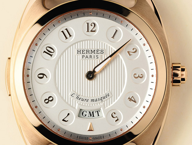 По порядку: модель Dressage L’heure Masquée представлена в классическом корпусе двух вариаций — в розовом 18-каратном золоте и блестящей нержавеющей стали, обладает автоподзаводным калибром H1925, декорированным 46 драгоценными камнями, и циферблатом из опалового серебра с гильошированным мотивом в центральной его части.