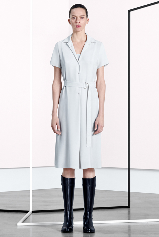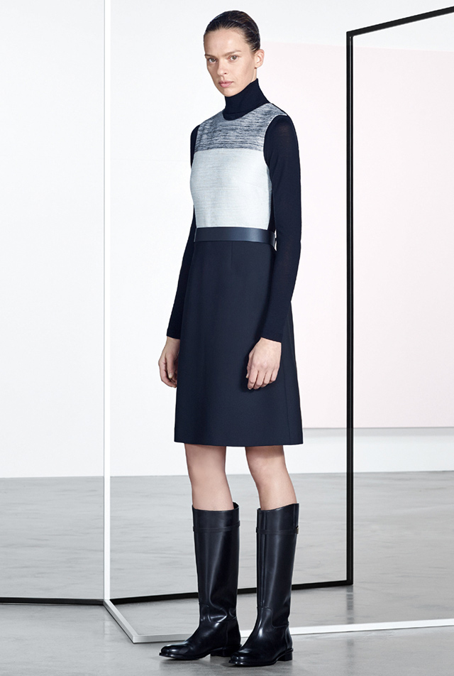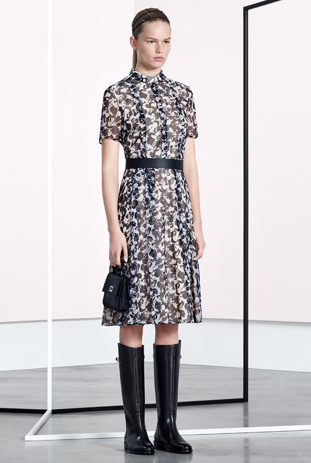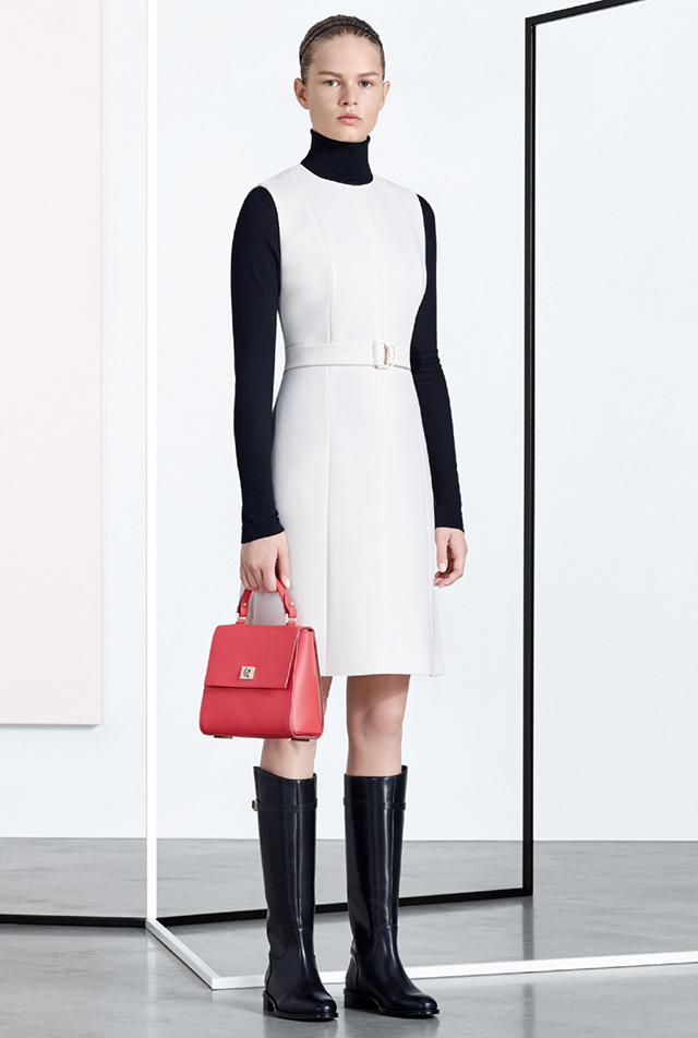 «Новая классика и никакого шума» — именно так звучит описание коллекции из официального пресс-релиза марки. Что ж, бледно-розовый смокинг до колен А-силуэта, простое платье с цветочным принтом, лаконичные костюмные пары, блузы со скромным бантом и, конечно же, водолазки, без которых в этом сезоне никуда, — что еще нужно женщине?