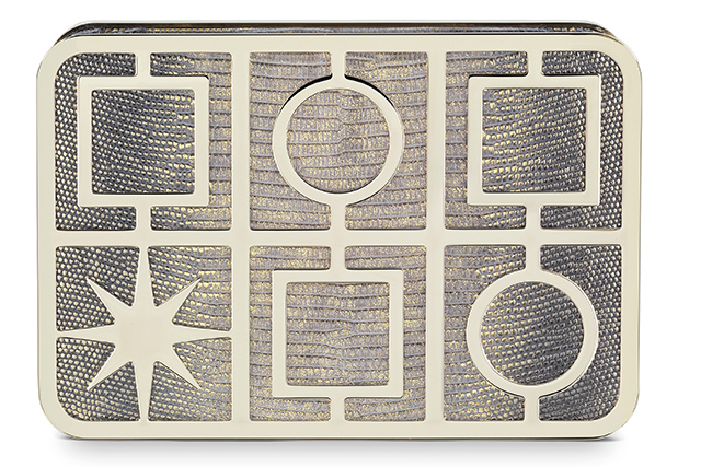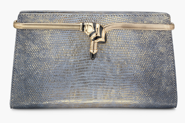 Появляются на моделях и другие знаки, отсылающие к Древнему Риму. Например, некоторые клатчи выглядят состаренными: сквозь голубую полустертую краску пробивается золотой блеск, и только змея, обвивающаяся кольцом вокруг сумки, сохраняет вид свежий и с иголочки. А на других и вовсе вырезаны древние символы, которые трудно сразу отнести именно к Риму, но можно и к нему.