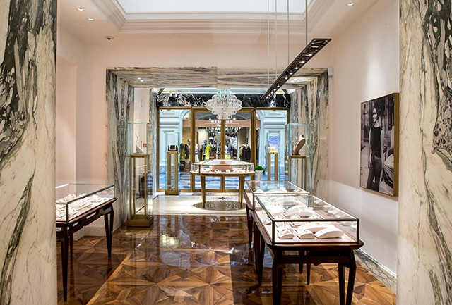Римские традиции и современный итальянский дизайн присутствуют и в оформлении бутиков Bvlgari по всему миру. Это легко заметить на примере открывшегося в октябре магазина в ГУМе. В основе его интерьера лежит концепт знаменитого архитектора Питера Марино, разработанный в прошлом году в честь 130-летия дома для главного исторического бутика в Риме на виа деи Кондотти, 10. Тут тот же традиционный белый мрамор, паркет из итальянского ореха, выложенный в форме звезды в технике деграде, имитирующий эффект восходящего солнца, люстра из знаменитого муранского стекла, а также символ равновесия и порядка — восьмиконечная звезда из красного порфира. Кусочек римского искусства теперь обрел свое заслуженное место в другом историческом центре мира — на Красной площади. Для первого бутика, который напрямую управляется самой компанией, это знаковый выбор. Bvlgari воплощает в себе призму времени, которая рассказывает захватывающие дух истории Рима сквозь грани современности и различные виды искусства.