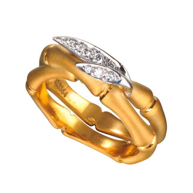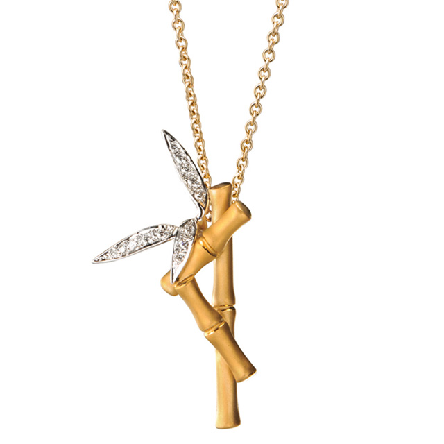 Все украшения коллекции Bambú связаны восточными декоративными элементами: золото принимает изящную форму бамбуковых стеблей с нежными листьями. Такое исполнение отсылает к истокам древней философии и несет особый смысл, ведь бамбук издревле считается на Востоке символом удачи.