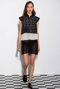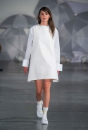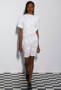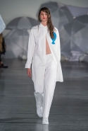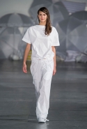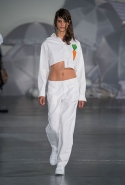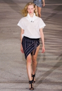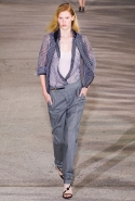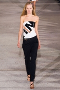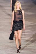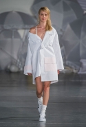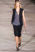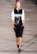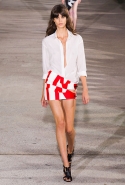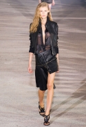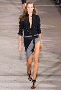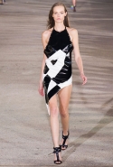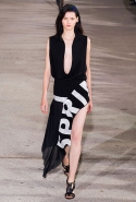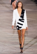 К привычной сексуальности своих городских амазонок дизайнер добавляет костюмы в стиле tomboy, на фоне которых кожаные юбки и прозрачные топы выглядят еще более дерзкими. А название собственной марки он использует в качестве главного принта. Хотя даже огромные буквы его имени не закрывают нижнего белья, которое пару раз предательски подмигивало из оказавшихся не в то время и не в том месте разрезов.