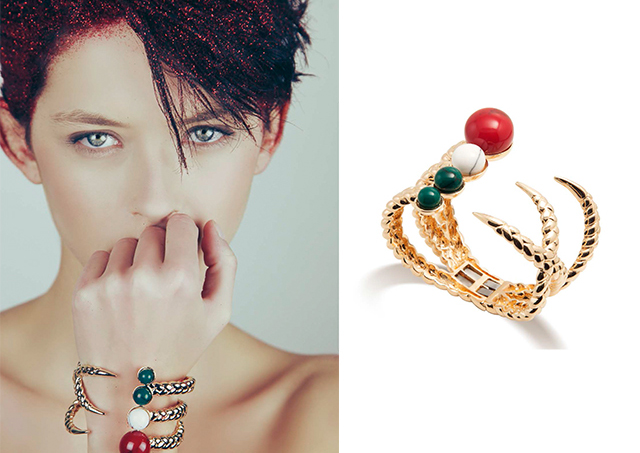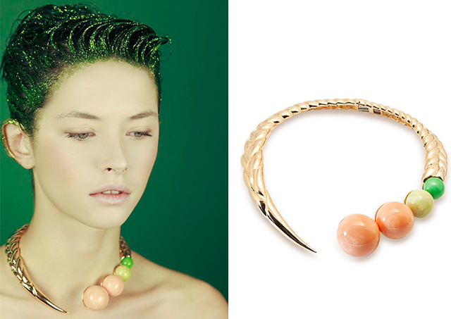 Остается в игре и главный символ марки Eshvi — название в переводе с грузинского означает "клык", и клыки вновь появляются даже в такой беззаботной, "детской" коллекции. На этот раз острыми наконечниками увенчаны все золотые косы.