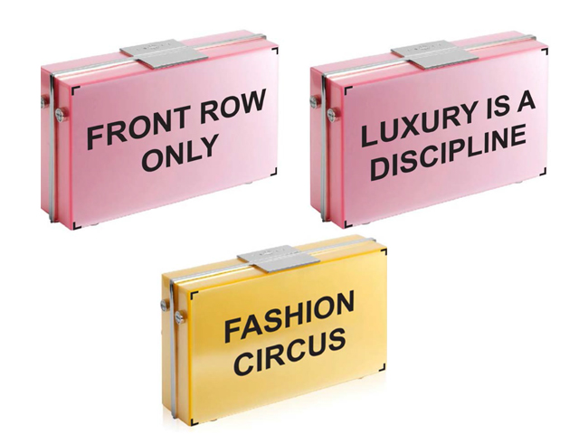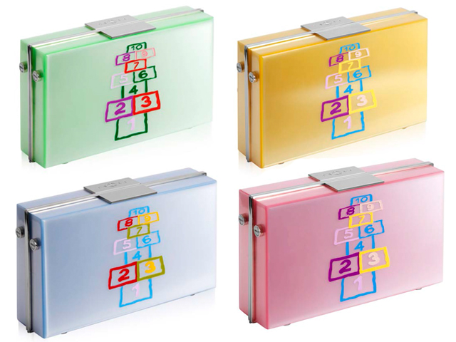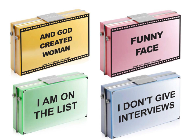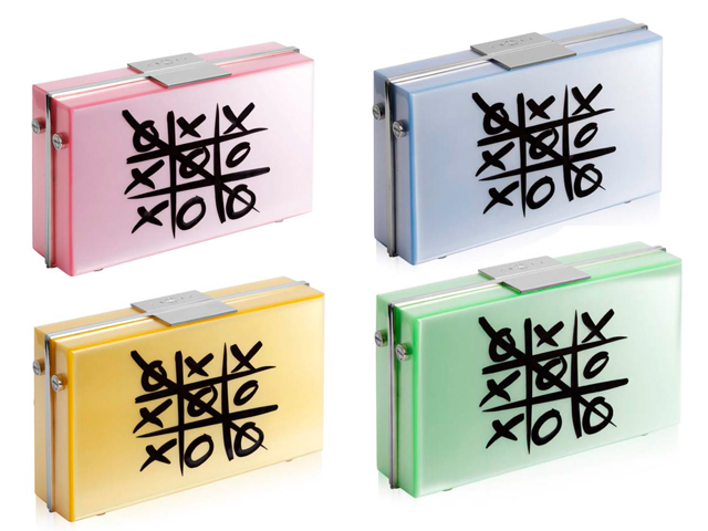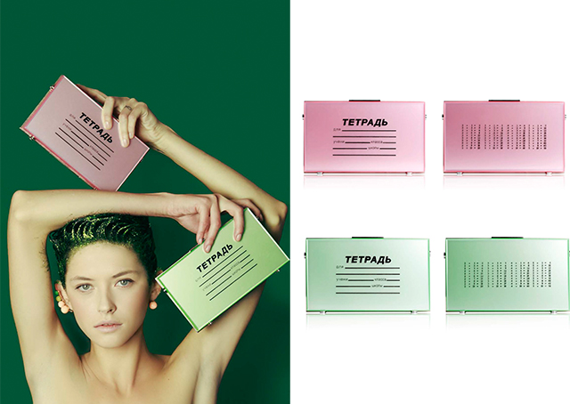 Отдельная тема для обсуждения — первая коллекция клатчей под маркой Eshvi. Простые пестрые коробочки расписаны яркими рисунками — где-то красуется разметка для игры в классики, где-то — поле для "крестиков-ноликов", сердца с упаковок из-под жвачек Love is... или просто смешные надписи, часто пересекающиеся с названиями знаменитых фильмов. Особенной популярностью уже пользуется клатч "Тетрадь", на оборотной стороне которого можно даже найти таблицу умножения. Но полюбился он светским девушкам не из-за того, что помогает им в несложных арифметических вычислениях: его можно персонализировать, написав на нем свое имя.