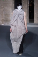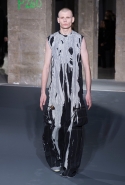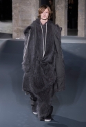 Перед каждым показом Рика Оуэнса — неважно, мужской он или женский — все гадают, какой перформанс дизайнер устроит на этот раз. А если не сам Оуэнс, так кто-то из моделей: как, например, тогда, когда один из его моделей решил прямо на подиуме высказаться об Ангеле Меркель. Но сегодня все было спокойно и провокационными не стали ни шоу, ни сама коллекция. Единственной причудой оказались лица некоторых моделей, раскрашенные под героев фильмов ужасов, — мертвенно выбеленные, с черными кругами на веках. Это, по словам самого Оуэнса, было отсылкой к французско-итальянскому хоррору «Глаза без лица» 60-го года, главная героиня которого, изуродованная в автокатастрофе, носила белую маску, оставляющую открытыми только глаза. Жертвами ее отца, пытавшегося спасти внешность своей дочери, правда, становились другие девушки, а вовсе не стройные мужчины, но это в данном случае роли не играет. Оуэнс, который эту картину очень любит, хотел, чтобы такой, как фильм, была и его коллекция — жуткой, но элегантной.