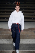 В итоге никакой особенной жути — по крайней мере, метров рваного и черного, которые с ней ассоциируются, — на подиуме не было. По-настоящему монструозными оказались только пара костюмов (или очень-очень длинных худи, закрывающих брюки) из махровой волосатой ткани. Объемы вообще на этом показе правили бал (так же, кстати, было и на шоу Рафа Симонса, тоже посвященном хоррорам), а главным действующим лицом стали гигантские и ужасно широкие брюки с мешками-карманами.