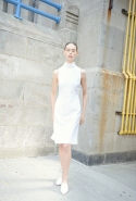 Но если полоски непременно появляются в каждой коллекции, то к более детальным принтам до этого момента Габриэла Херст явно не тяготела. В межсезонье же принты неожиданно появились, и сразу два: из цветных крапинок, похожих на карандашные росписи, и наслаивающихся друг на друга геометрических фигур. А еще — кружевное платье, густо затянутое красными цветами и травянисто-зелеными листьями.