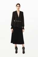 Как всегда в случае с Givenchy, наряды не так просты, как кажутся на первый взгляд: так, базовые черные вещи превращаются в остромодные благодаря контрастным белым принтам и деталям, а простой кожаный ремень становится настоящим лейтмотивом коллекции. За основой гардероба следует новая трактовка, которую дизайнер дал классическому принту в горошек, нанеся его на прозрачные ткани и мастерски скомбинировав с цветочными орнаментами. Последние, кстати, умело разбавили строгий крой платьев, превратив классические наряды в воплощение новой женственности.