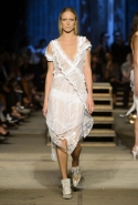 Второй день недели моды — не время для больших модных потрясений. Обычно в течение первых суток все только начинает раскачиваться, чтобы ко дню третьему-четвертому на нас обрушился поток перворазрядных шоу. В один день устраивают показы Диана фон Фюрстенберг и Александр Ванг, к ним присоединяется Виктория Бекхэм... Но на этот раз привычный ход дела нарушил Риккардо Тиши. Вместо того чтобы, как обычно, дождаться парижской недели моды, он сначала — в конце июня — объявил о том, что в новом сезоне переносит показ в Нью-Йорк, а затем — уже за десять дней до старта недели, — что попасть на него сможет каждый желающий, успевший купить один из более 1 000 билетов, выпущенных в продажу. А студентам модным школ и жителям района, где должно было пройти шоу, билеты достались бесплатно. И этот шаг, по меркам модного мира, был уже революционным.