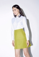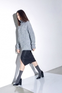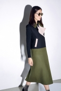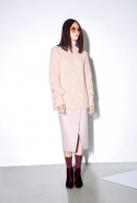 Что изменилось по сравнению с предыдущими коллекциями? Во-первых, к акрилу и «экокоже» добавились и более дорогие, а главное, натуральные ткани — впрочем, движение в данном направлении началось не этой осенью, а чуть раньше. Во-вторых, в привычный ассортимент вошли объемные свитеры крупной вязки (что важно, с чуть удлиненными рукавами — а это одна из заметных тенденций всего осенне-зимнего сезона) и юбки с асимметричным низом. В-третьих, усложнились декоративные элементы: плотные, «густые» вышивки украшают воротники и подолы рубашек и платьев. И их плавные, сглаженные линии действительно интересно смотрятся на контрасте с геометричной резкостью большинства вещей.