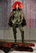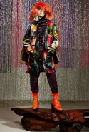 Правда, вместе с тем в арсенале модного племени Kenzo имеются и минималистичные платья необычного кроя в черно-белой гамме, и классические шелковые костюмы. В новой коллекции дизайнеры обращаются не только к архаичным орнаментам, но и иероглифам, создав целую серию вещей, украшенных древними письменами. Пожалуй, единственное, чего не коснулась палитра, которой позавидовал бы сам Гоген, — это верхняя одежда. Объемные парки и полупальто отличаются спокойными тонами, за исключением разве что меха на капюшоне — оранжевого и зеленого. Что ж, такая первобытность нам по вкусу.