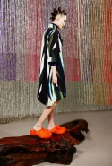 Дизайнеры Kenzo объявили войну спокойным оттенкам и мягким фактурам, так часто встречающимся в межсезонных коллекциях, сделав героиней линейки pre-fall авангардную кочевницу, которая не боится ни пестрых красок, ни необычных материалов. Ну кто еще рискнет сочетать многослойность с принтом и разноцветной меховой обувью? "Kenzo всегда вдохновляли кочевые племена, и мы захотели создать свое собственное", — рассказывает Леон, и, похоже, эта задача оказалась дизайнерам под силу. Меховая обувь, напоминающая традиционные унты, сочетается с асимметричными пончо и свободными платьями с ярким печворком, а похожие принты наслаиваются друг на друга, превращаясь в настоящее буйство красок и орнаментов.