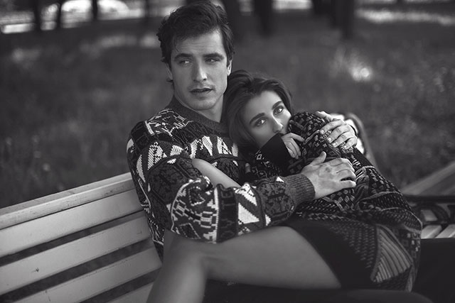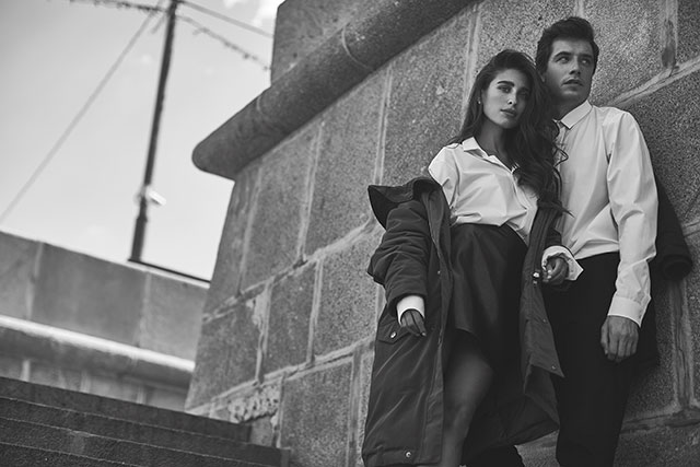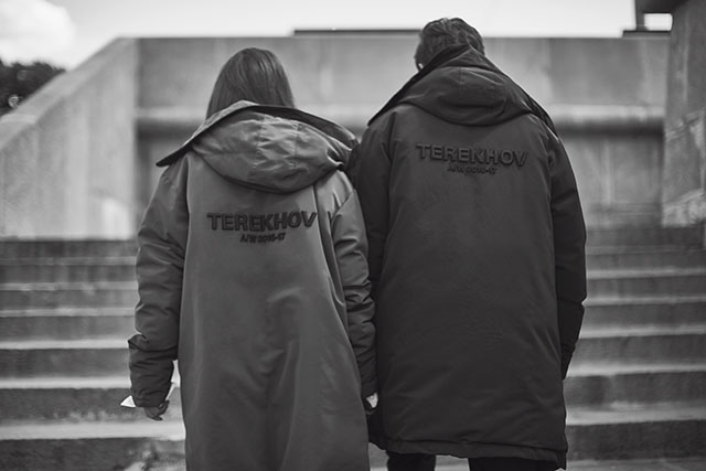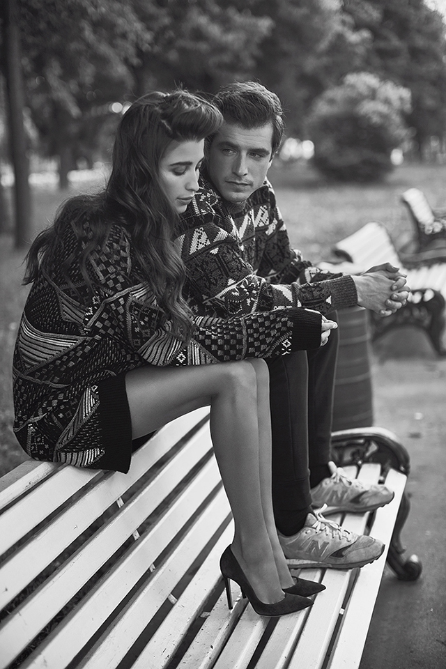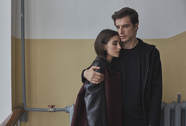 Для лукбука коллекции осень-зима 2016 фотограф Даниил Головкин запечатлел Кирилла Иванова и Анну Литвинову на фоне московских пейзажей