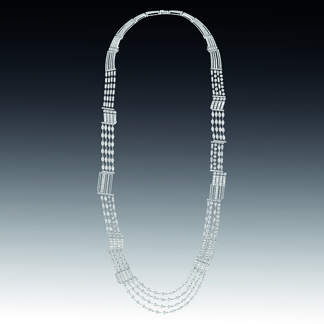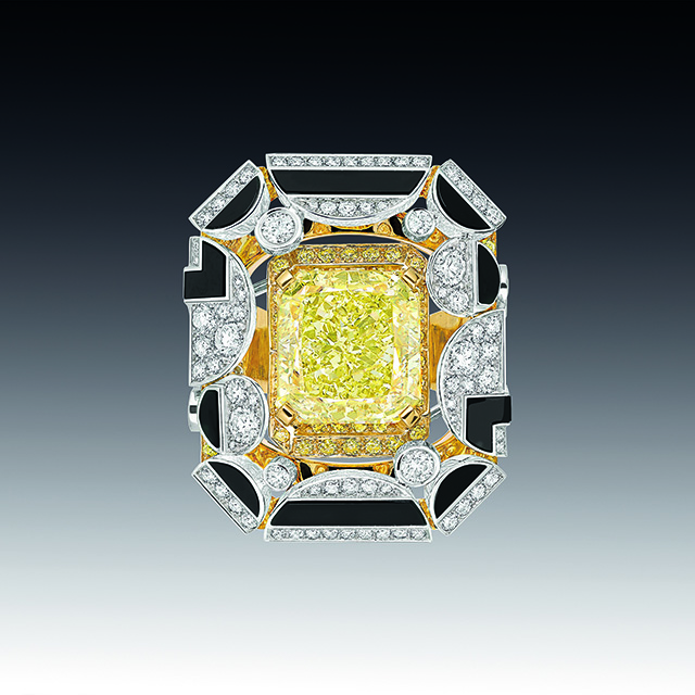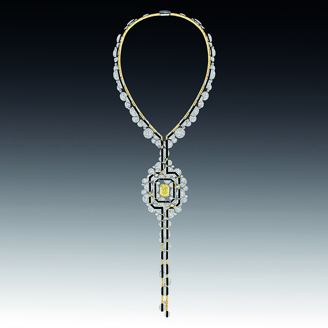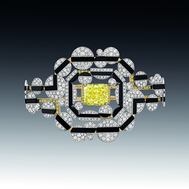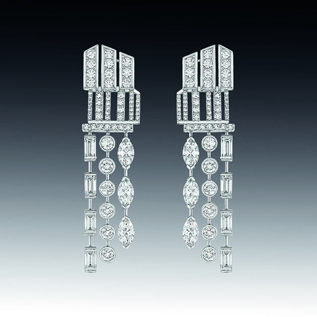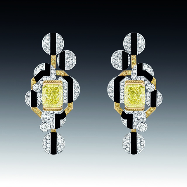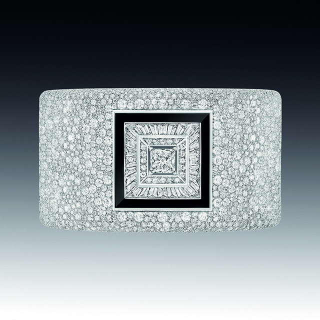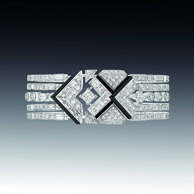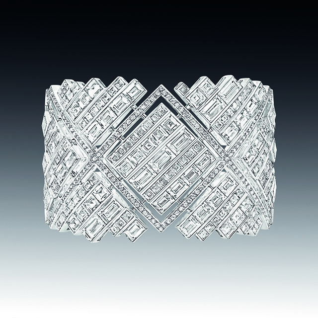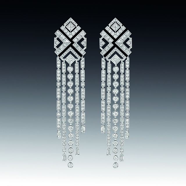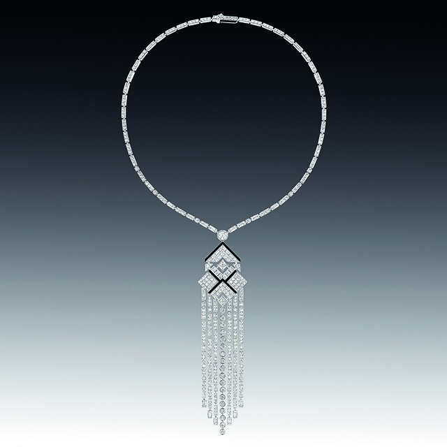 На этот раз ювелиры Chanel отошли от привычных нам львов, камей и перьев, заменив их четкой геометрией линий ар-деко, стиля богемы 20-х годов прошлого века. Драгоценности в большинстве своем украшены белыми бриллиантами и черным ониксом, что в сочетании с дизайном создает строгий и элегантный стиль.