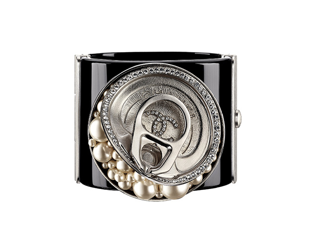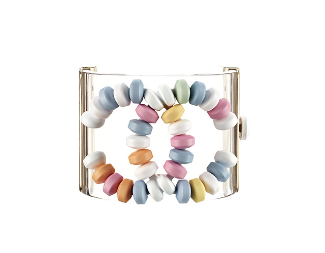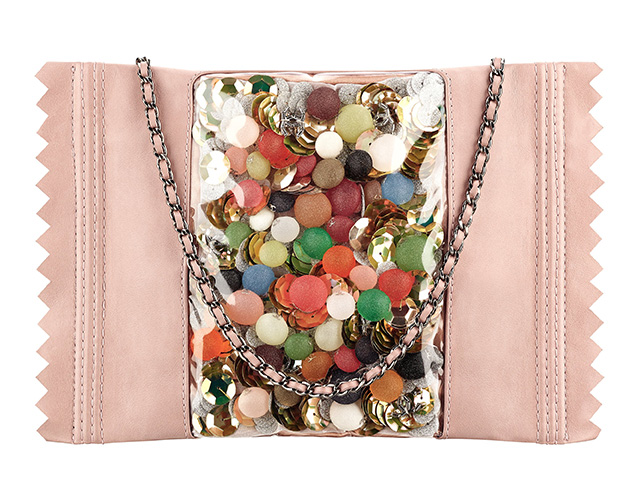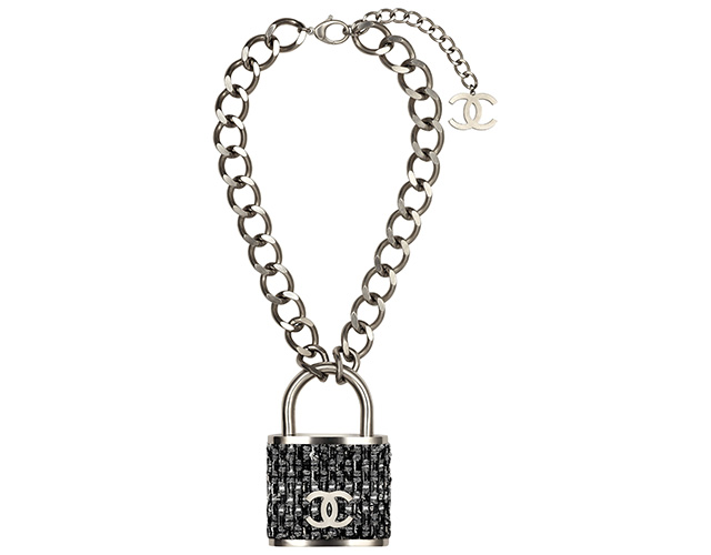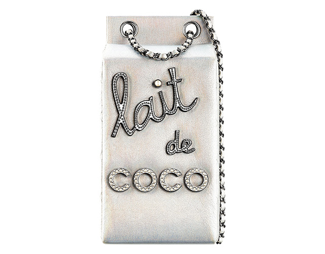 Наконец-то нам во всех подробностях удалось разглядеть и другие украшения, которые на парижском показе было не так хорошо видно. Кулоны-замочки разных цветов, выложенные конфетками логотипы с перекрещенными буквами "C" на украшениях, браслет в виде консервной банки, сумка в виде пакета молока — подумать только, а мы еще когда-то удивлялись сумочке Кэрри в виде Эйфелевой башни из первого полнометражного "Секса в большом городе"!