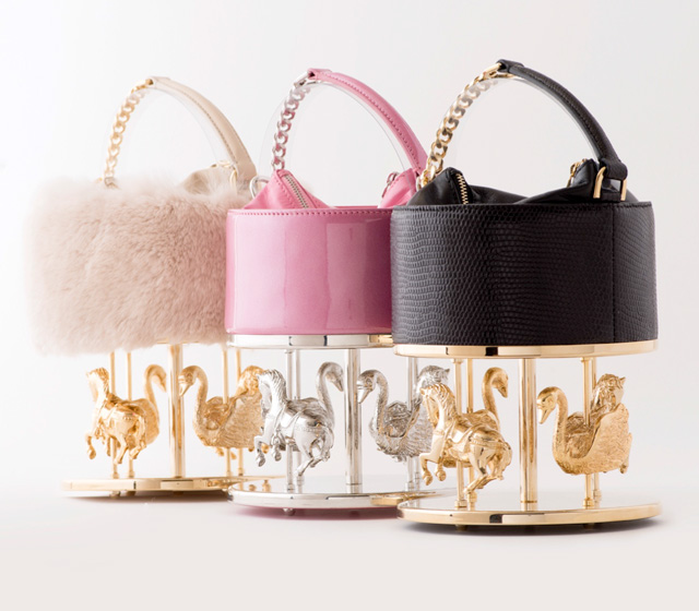 Сюрреалистические глазастые клатчи, цветной мех, сумка-карусель, лаковое карамельное яблоко — коллекция Delusions дает возможность обладательнице сумки показать всю свою поэтичную натуру. Инес Фигадеро сочетает в своих изделиях испанскую технику обработки кожи и ювелирные методики, создавая неповторимые сумки, напоминающие арт-объекты.