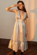 Хотя отсылки к этим двум десятилетиям, будем честными, успели немного утомить, весеннюю коллекцию Kalmanovich упрекнуть нам не в чем: добавив к широким рукавам, юбкам мини и миди и укороченным расклешенным брюкам богатые фактуры, дизайнер Юлия Калманович сделала правильный ход. Минимализм в данном случае не сработал бы: уж слишком много вещей тех же силуэтов мы видели за последние два года. А цветочные аппликации, вышивки и принты (что в теории ход тоже не самый удивительный) придают ей свое особенное очарование. То же можно сказать и о серебристой парче — этот материал смотрится здесь неожиданно, но очень убедительно.