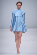 Но чего нет, того нет. Поэтому выбирать приходится из платьев — непременно длины мини, которая уже на девушке выше среднего роста начнет смотреться почти радикальной (вот вам и долгожданная связь с названием The Rebel). Эта коллекция, для дизайнеров только вторая подиумная, по их словам, вдохновлена Москвой, что вполне забавно связывает ее с предыдущей. Тогда их героиня будто бы возвращалась в столицу из-за границы и готовилась, едва выйдя из самолета, снова окунуться в московскую жизнь. Судя по тому, как она выглядит сейчас, проникнуться удалось, по крайней мере оценить места туристические. Узоры, как на стенах собора Василия Блаженного, немного от купеческого костюма, цветовая палитра из небесно-голубого, золотистого и красного — все, как мы видим, из истории. А от современного московского стиля здесь взято немного.