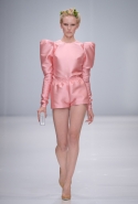 Девушки, в дизайнеров переквалифицировавшиеся не так давно, продолжают делать яркие и понятные (что не всегда означает исключительно простые) вещи, судя по предыдущим коллекциям, еще и не за самые большие деньги. Название для собственной марки они, правда, выбрали не очень подходящее. Меньше всего эти мини-платья нежных красок похожи на одежду для бунтарки. Так же мало шансов оказаться в ее гардеробе и у брюк клеш, которые, кажется, появлялись и в предыдущей коллекции Калаевой и Мелкумян, и у их рюкзачка-«бриллианта», с прошитыми ребристыми гранями. Все это очень мило и наверняка нравится девочкам, но порой ловишь себя на мысли, что все эти пастельные тона и пышные рукава действительно променял бы на что-нибудь более бойкое, например на какую-нибудь кожаную куртку с возможностью ее потом кастомизировать.
