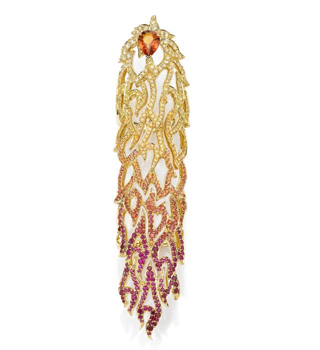 Флагман коллекции — "огненное" кольцо из 18-каратного желтого золота с красными и желтыми сапфирами. Капсульная коллекция будет эксклюзивно представлена в ЦУМе.