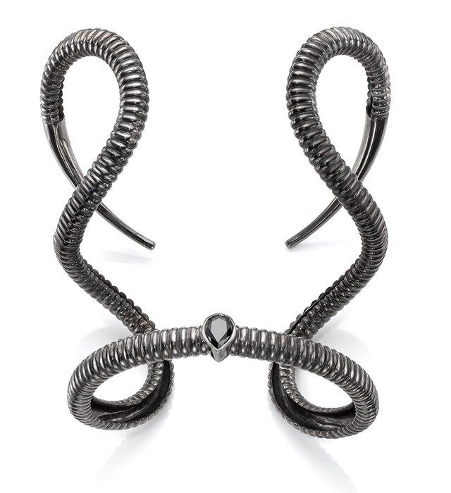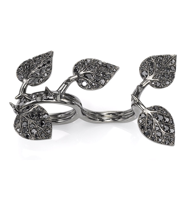 Дизайнер ювелирного дома Даниэль Беливич использовал основные сказочные мотивы для создания семи предметов из новой коллекции бренда Crow's Nest: кольца, браслеты и каффа приобрели очертания мифических драконов, языков пламени, рогов, перьев и шипов. Все украшения выполнены из родия и декорированы черными бриллиантами, ониксом грушевидной формы и зелеными цаворитами, которые стали воплощением темной энергетики главной героини фильма "Малефисента" в исполнении неподражаемой Анджелины Джоли.