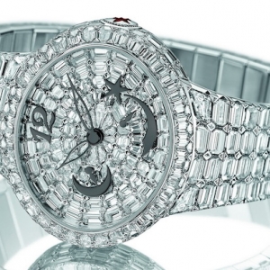 В часовом ряду прославленной коллекции Cat's Eye прибыло: по случаю 10-летней годовщины женской "кошачьей" линейки Girard-Perregaux представили новый турбийон Cat's Eye Tourbillon with Gold Bridge. Под овальным корпусом из белого золота, усыпанного 294 бриллиантами, спрятан механизм с ручным заводом GP09700-0012, запасом хода 70 часов и водонепроницаемостью на глубине до 30 метров. Особую элегантность модели придает перламутровый циферблат с узорным орнаментом, на котором точное время покажут центральные часовая и минутная стрелки, а также малая секундная, закрепленная на оси турбийона.