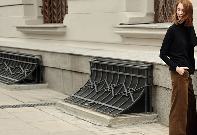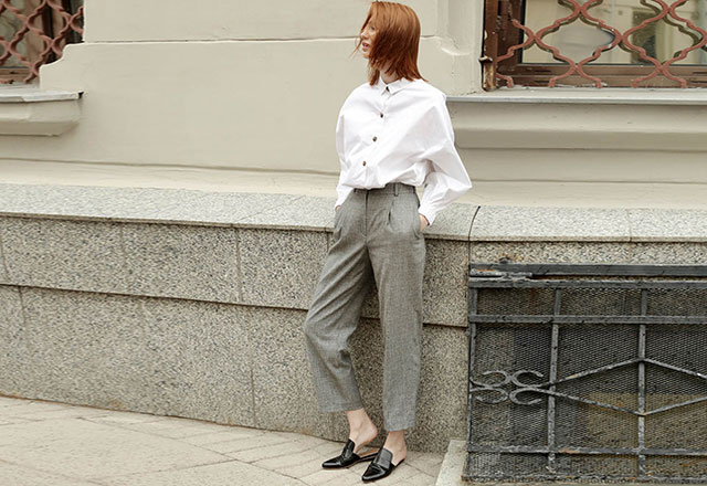 Платье миди из серой костюмной ткани можно надеть в офис, как и правильного объема белую рубашку на пуговицах в комплекте с белыми брюками или блузу с воротником-хомутом в сочетании с юбкой ниже колен. Коричневые вельветовые брюки свободного кроя с легким джемпером идеально подойдут для прогулки в выходной день. Есть в коллекции и вещи «на выход», например платье с птичьим рисунком и на пуговицах, которое можно расстегнуть совсем не по офисному дресс-коду почти до середины бедра. Трендовое пальто-халат в исполнении 12Storeez сочетается со всеми остальными вещами в этой капсуле и представлено в классическом песочном цвете и в насыщенном черничном.
