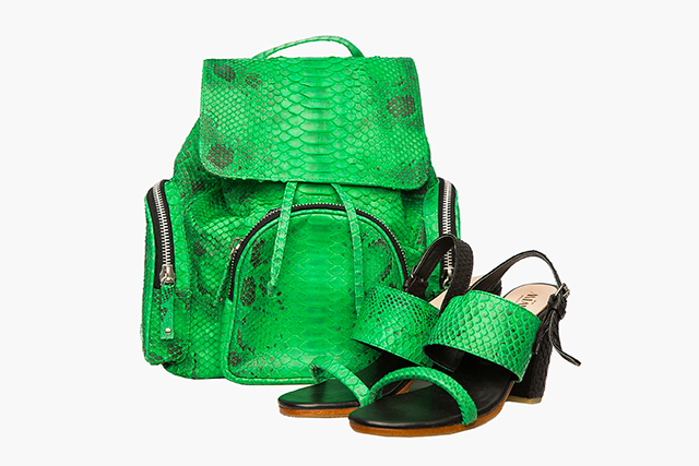 Марка Madeindreamland запомнилась всем с первого же сезона, хотя выпускались под ней поначалу только рюкзаки из питоновой кожи. Постепенно ассортимент разрастался, пополняясь все новыми моделями, и в начале 2016-го от первой «отпочковалась» и вторая марка — MiaW. Ее Лина назвала в честь своей дочки, Мии Вестфолл, родившейся здесь же, на Бали. Первая коллекция состояла только из кожаных курток, но сейчас, спустя всего полгода, дизайнер пополнила линейку, добавив красочные босоножки, а также клатчи, рюкзаки и сумки из кожи питона, которые раньше делала для Madeindreamland. Самые приятные из новинок — это как раз босоножки, появившиеся в коллекциях Лины впервые. Они сделаны по принципу color blocking: лоскуты кожи окрашены в самые яркие цвета и сложены в самых жизнерадостных комбинациях. Хотя и варианты поспокойнее тоже найдутся.