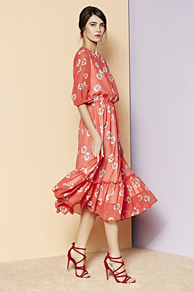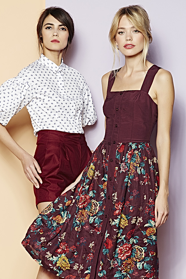 Поскольку темой сезона на этот раз стали 50-е, в центре внимания автоматически оказались платья, причем самого разного кроя. Есть здесь и комбинации на тонких бретельках, и платья-рубашки, и сарафаны с узкими корсажами и пышными юбками, и просторные «семидесятнические» наряды в цветах, и более строгие варианты для офиса. Но не платьями едиными довольствоваться клиенткам Libellulas: из всех остальных предложенных вещей особенно хочется отметить комплекты из блуз с юбками, особенно один — с просторной рубахой в мелкий красный цветок и юбкой из белого кружева.