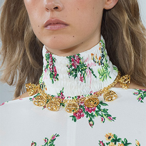 Узнаваемый почерк дизайнера — цветочные принты, которые есть в каждой коллекции. Мелкий, как на винтажных ситцах, цветочек украсил километры тонкого шелка — для платьев в пол, нежных турнюров и объемных юбок материала не пожалели. Та же история с кружевом — из него сшили платья с завышенной линией талии, как на исторических портретах эпохи. Приглушенная цветовая палитра изредка окрашивалась вспышками песочного и алого, довершая меланхолическое настроение коллекции.