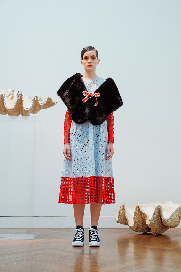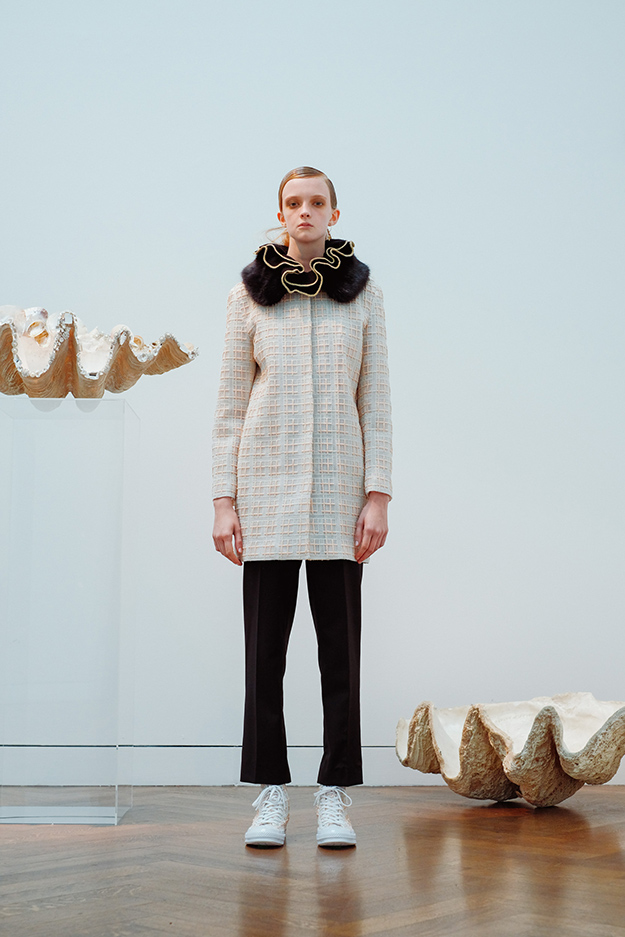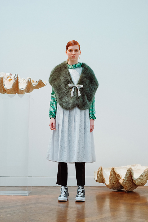 Показ молодой, но уже успешной британской марки Shrimps прошел в одном из помещений аукциона Christie's. Известный своими меховыми аксессуарами и пальто бренд выбрал формат презентации для представления новой коллекции.