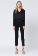 В межсезонье Александр не стал экспериментировать с силуэтами и кроем, а собрал идеальную коллекцию базовых вещей: разумеется, платьев, а также блуз, юбок, одежды из денима. Джинсовая линия под маркой Alexander Terekhov появилась всего год назад, как раз в предыдущей коллекции pre-fall. И к следующей осени дизайнер значительно расширил модельный ряд: к джинсовым юбкам на пуговках добавились также платья и куртки, а брюки из денима появились сразу в трех цветах. Увеличился и выбор верхней одежды: помимо узнаваемых пальто и парок с меховыми воротниками дизайнер порадовал поклонниц несколькими моделями пуховиков, яркими дубленками и шубами из меха калгана.