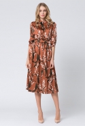 Предосенняя коллекция Alexander Terekhov получилась очень простой, но обаятельной — в конце концов, именно на женственных платьях, которые и стали основой pre-fall 2015, Александр заработал себе имя. Особую роль в работах российского дизайнера всегда играют принты, меняющиеся с каждой коллекцией: каждый сезон команда модного дома разрабатывает особый рисунок, по которому поклонницы бренда будут распознавать друг друга в светской толпе. На этот раз в центре внимания нежный рисунок из ландышей, который придает всем вещам легкий ностальгический дух. В таких платьях могли бы ходить на танцы "лучшие девушки Москвы и Московской области", героини самых светлых советских фильмов. Однако второй принт, рисунок из россыпи кофейных зерен, более лаконичен и уравновешивает сентиментальный ландышевый.