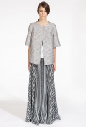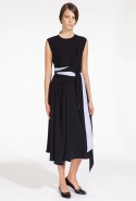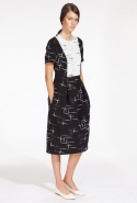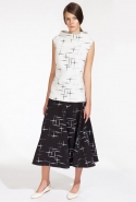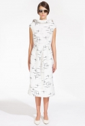 Некоторые вещи находятся где-то между двумя этими группами — в той зоне, которую принято называть золотой серединой. Это, например, платья с драпировками и узлами, почти незаметными на черном фоне (по-настоящему оценить замысел дизайнера смогут только очень внимательные), или костюмы, расчерченные белыми крестиками.