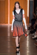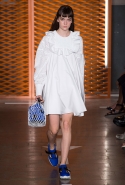 В сезоне весна-лето 2017 моду на спортивный стиль Джорджетти выносит на новый уровень с помощью чрезмерной, но привычной для MSGM стилизации: сеткой дополняет платья-майки, ветровки сочетает с шортами, поверх рубашек надевает спортивные топы, кукольные объемные платья показывает в паре с массивными серьгами и кроссовками. Со стороны выглядит все это диковато, но байеры обязательно заполнят магазины этими рубашками и платьями с воланами, а также плиссированными юбками и сандалиями, которые будут носить с чем-то более нейтральным.